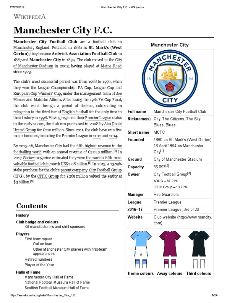 Liverpool News Reds Fan Transfers Ownership Of Manchester City S Etihad Stadium To Jurgen Klopp On Wikipedia Metro News. Currently its home is the city of manchester stadium, but until 2003 it played at maine road. This logo was used as a corporate logo in the 1960's before being used on kits. Mark's and adopted its current name in 1894. This is a logo for manchester city f.c. Manchester city football club is an english football club based in manchester that competes in the premier league, the top flight of english football. Ony substitute that is nae a derivative wirk would fail tae convey the meanin intendit, would tarnish or. And all of its representative clubs including reserves, youth and women's teams. See more ideas about manchester city logo, manchester city, city logo. Welcome to mancity.com, online home of premier league winners manchester city fc. Get the latest man city news, injury updates, fixtures, player signings and much more right here. Product story this man city 125th anniversary jersey is the perfect pick to celebrate your team. Download free manchester city fc new vector logo and icons in ai, eps, cdr, svg, png formats. From the 1926 fa cup final until the 2011 fa cup final, manchester city shirts were adorned with the coat of arms of the city of manchester for cup finals. Последние твиты от manchester city (@mancity). Manchester city football club was created in 1880 as st.